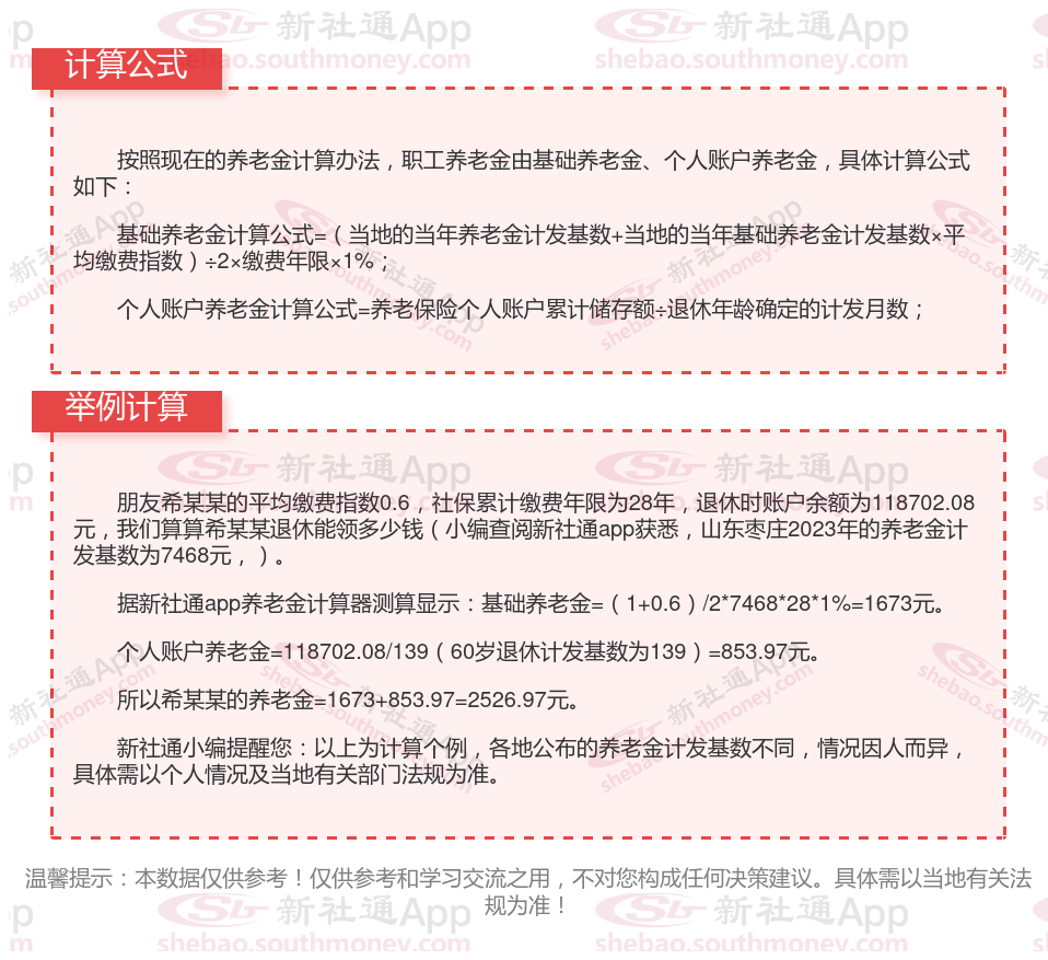 山东枣庄退休工资养老金计算方法及公式2024年最新(举例说明)