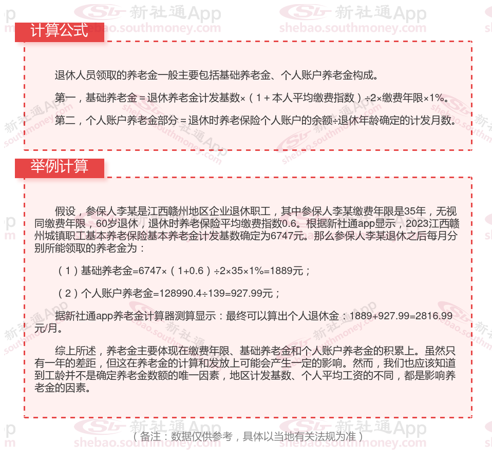 江西赣州退休工资养老金计算方法及公式2024年最新(举例说明)