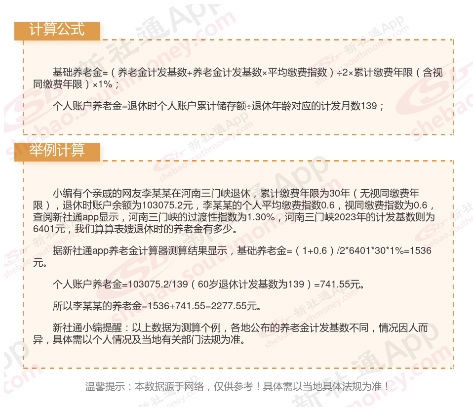 河南三门峡退休工资养老金计算方法及公式2024年最新(举例说明)