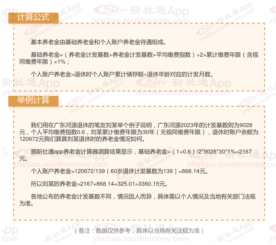 广东河源退休工资养老金计算方法及公式2024年最新(举例说明)