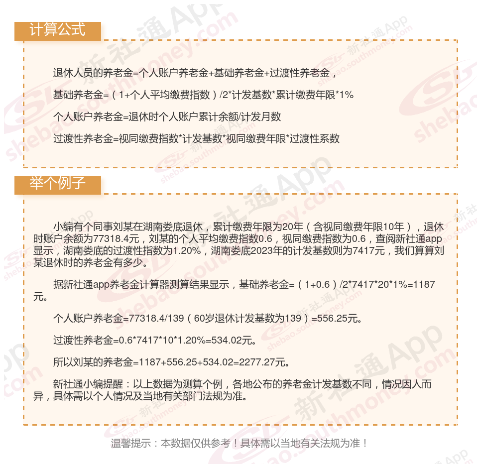 湖南娄底退休工资养老金计算方法及公式2024年最新(举例说明)