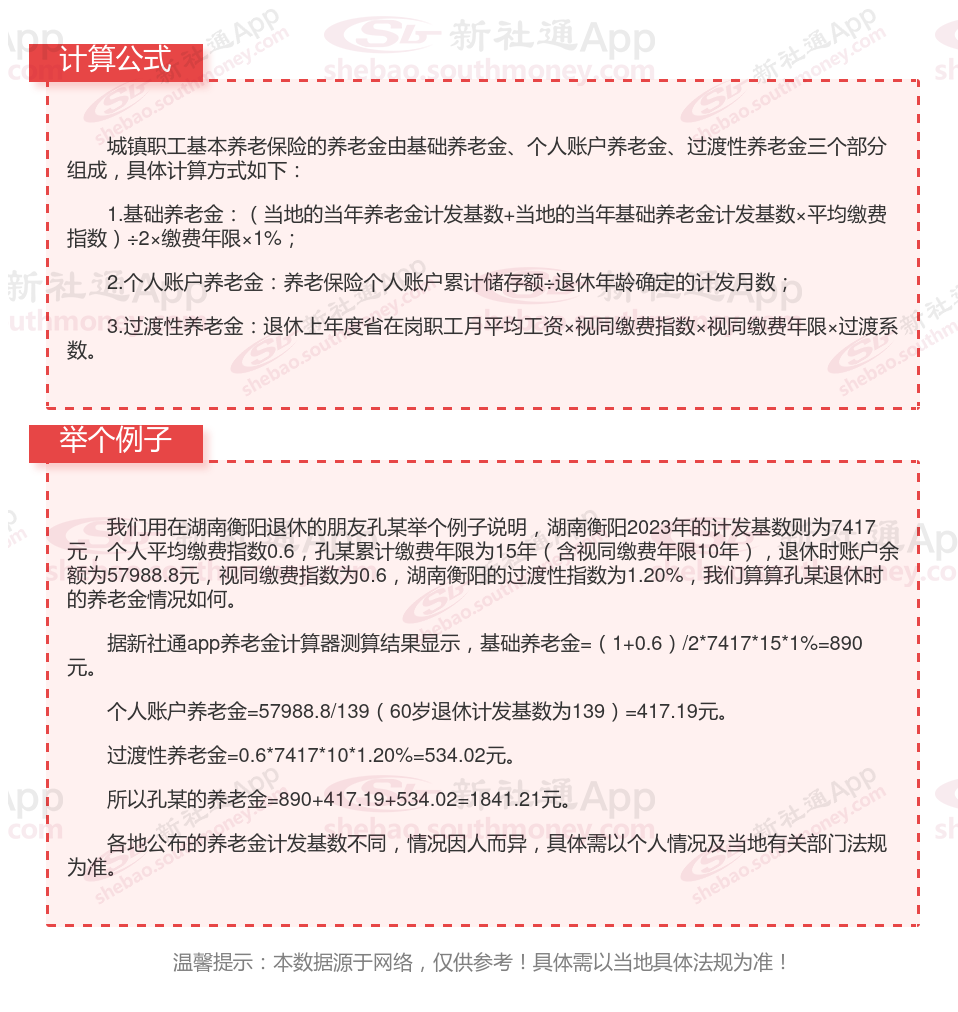 湖南衡阳退休工资养老金计算方法及公式2024年最新(举例说明)