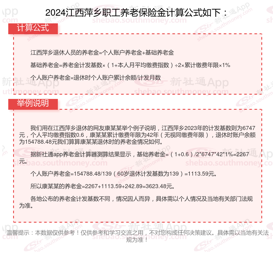 江西萍乡退休工资养老金计算方法及公式2024年最新(举例说明)