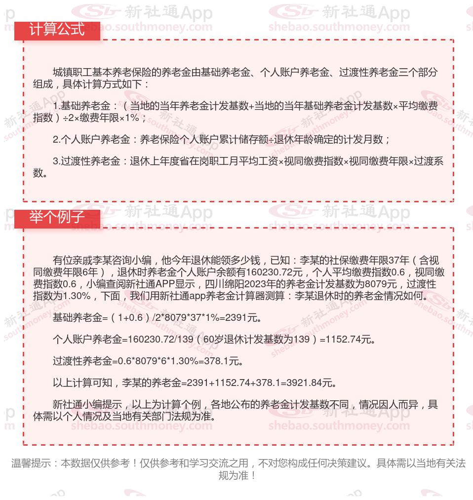 四川绵阳退休工资养老金计算方法及公式2024年最新(举例说明)