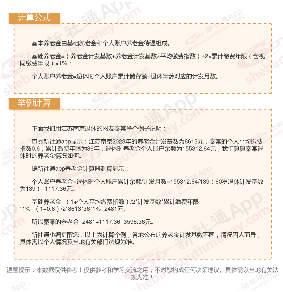 江苏南京退休工资养老金计算方法及公式2024年最新(举例说明)