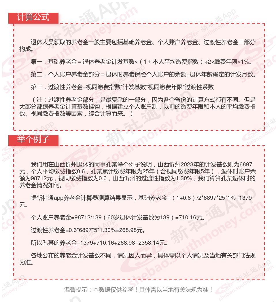 山西忻州退休工资养老金计算方法及公式2024年最新(举例说明)