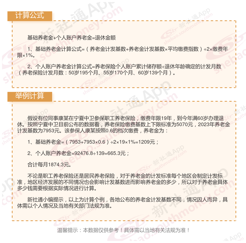 宁夏中卫退休工资养老金计算方法及公式2024年最新(举例说明)