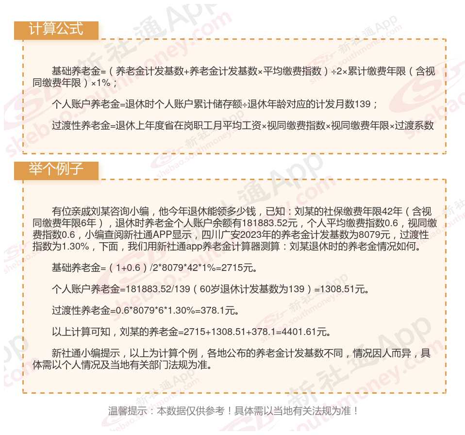 四川广安退休工资养老金计算方法及公式2024年最新(举例说明)