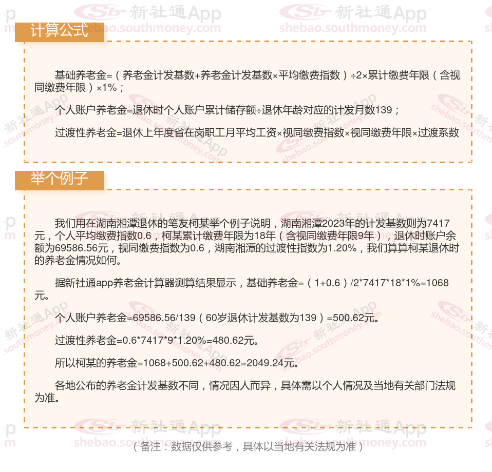 湖南湘潭退休工资养老金计算方法及公式2024年最新(举例说明)