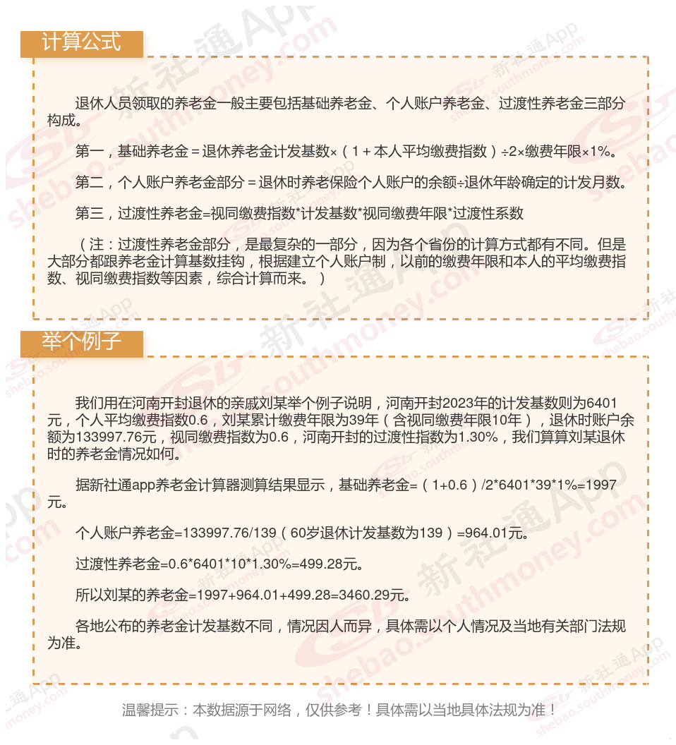 河南开封退休工资养老金计算方法及公式2024年最新(举例说明)