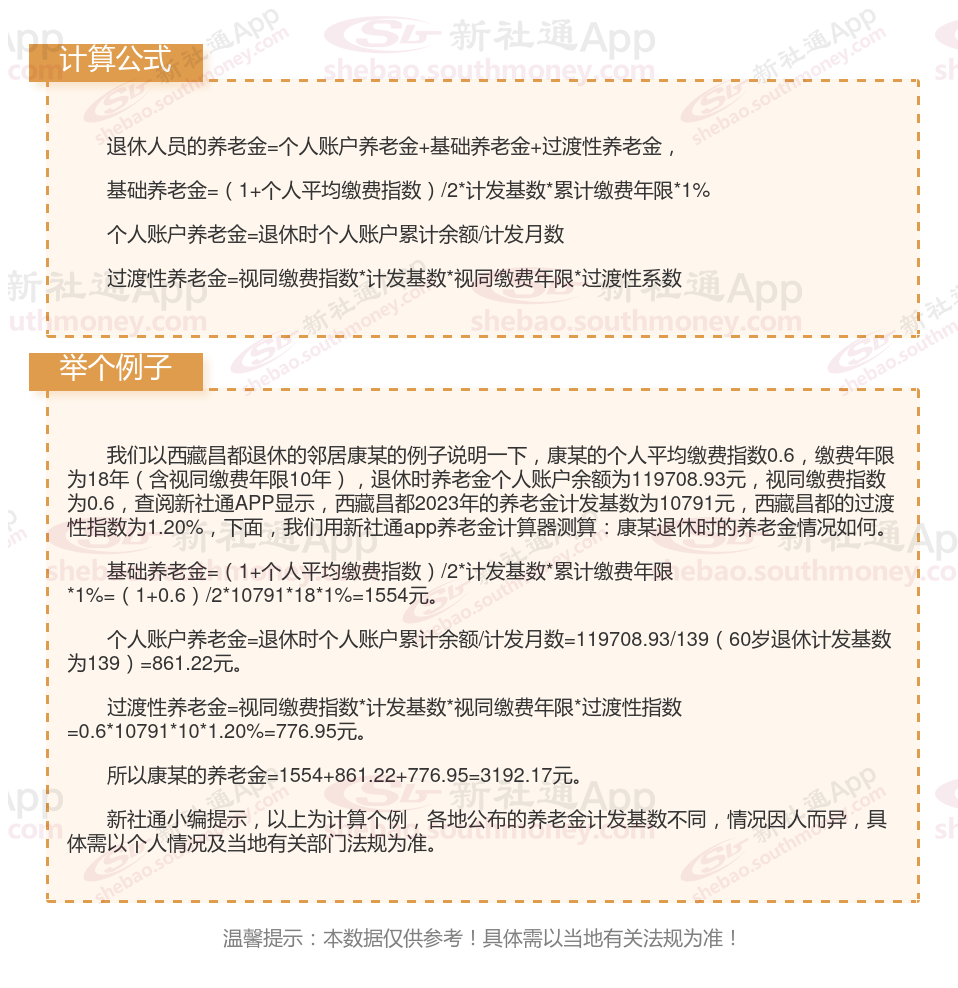 西藏昌都退休工资养老金计算方法及公式2024年最新(举例说明)