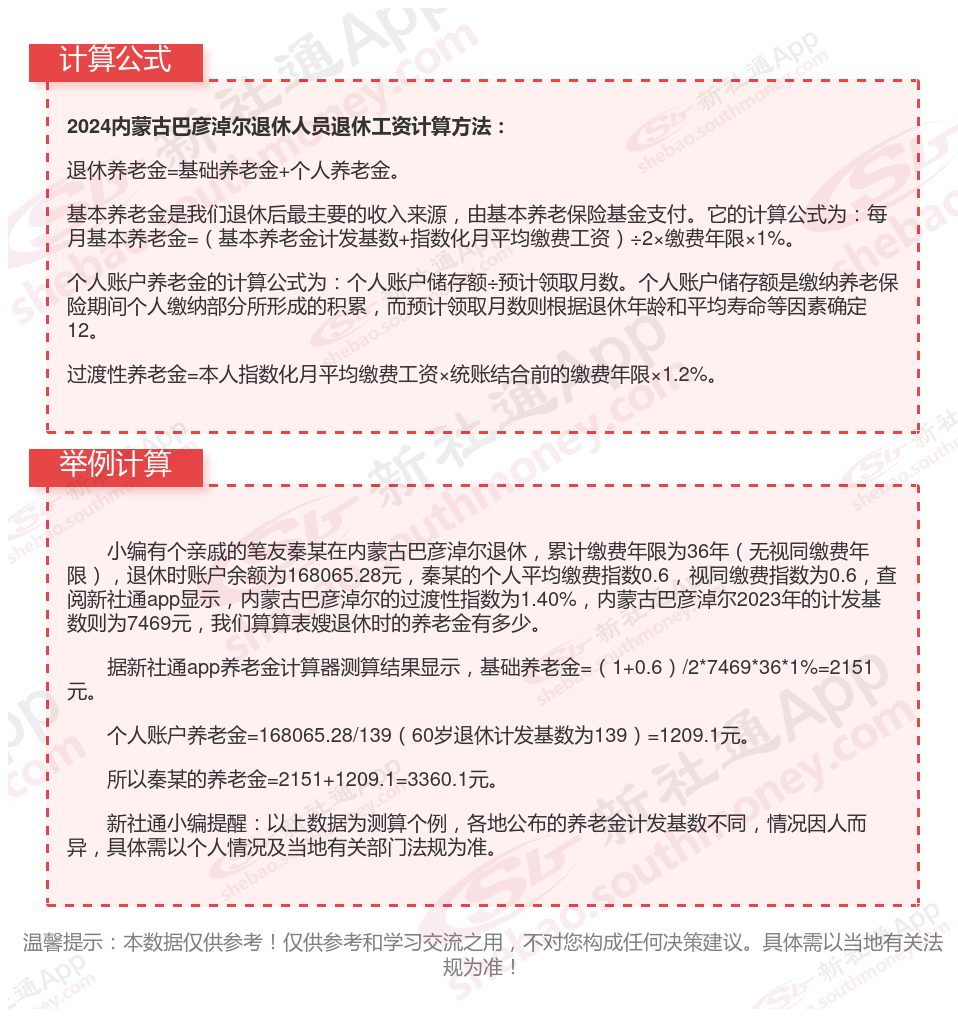 内蒙古巴彦淖尔退休工资养老金计算方法及公式2024年最新(举例说明)