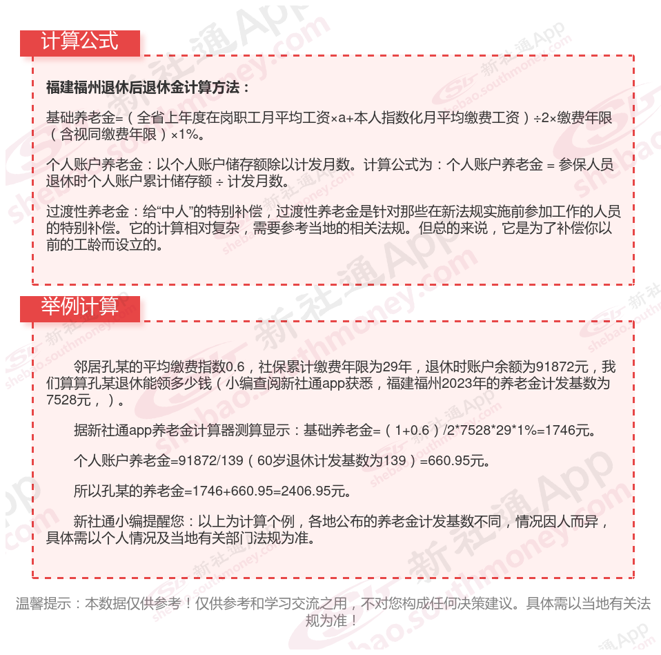 福建福州退休工资养老金计算方法及公式2024年最新(举例说明)