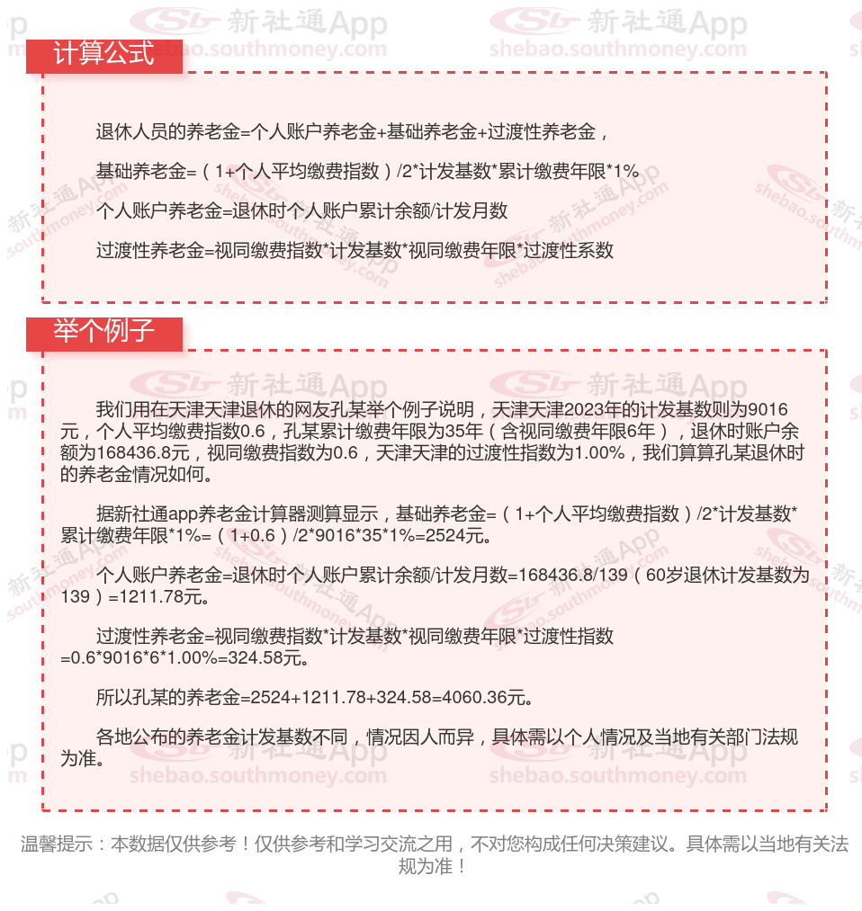 天津天津退休工资养老金计算方法及公式2024年最新(举例说明)