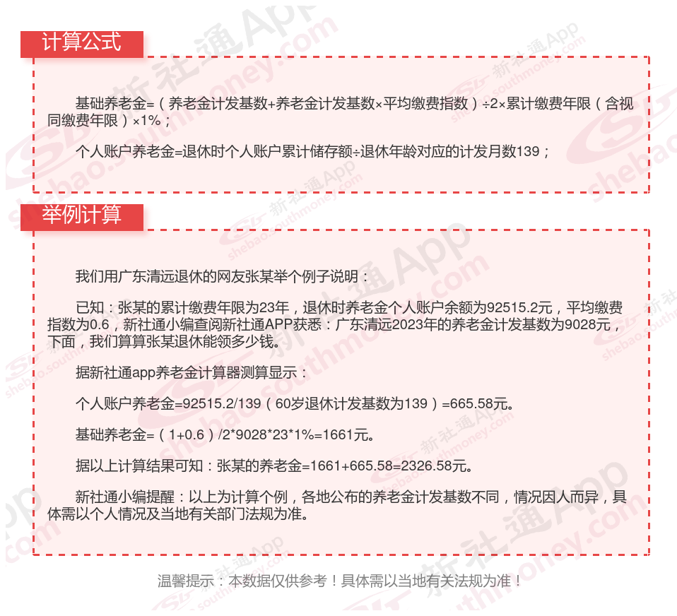 广东清远退休工资养老金计算方法及公式2024年最新(举例说明)