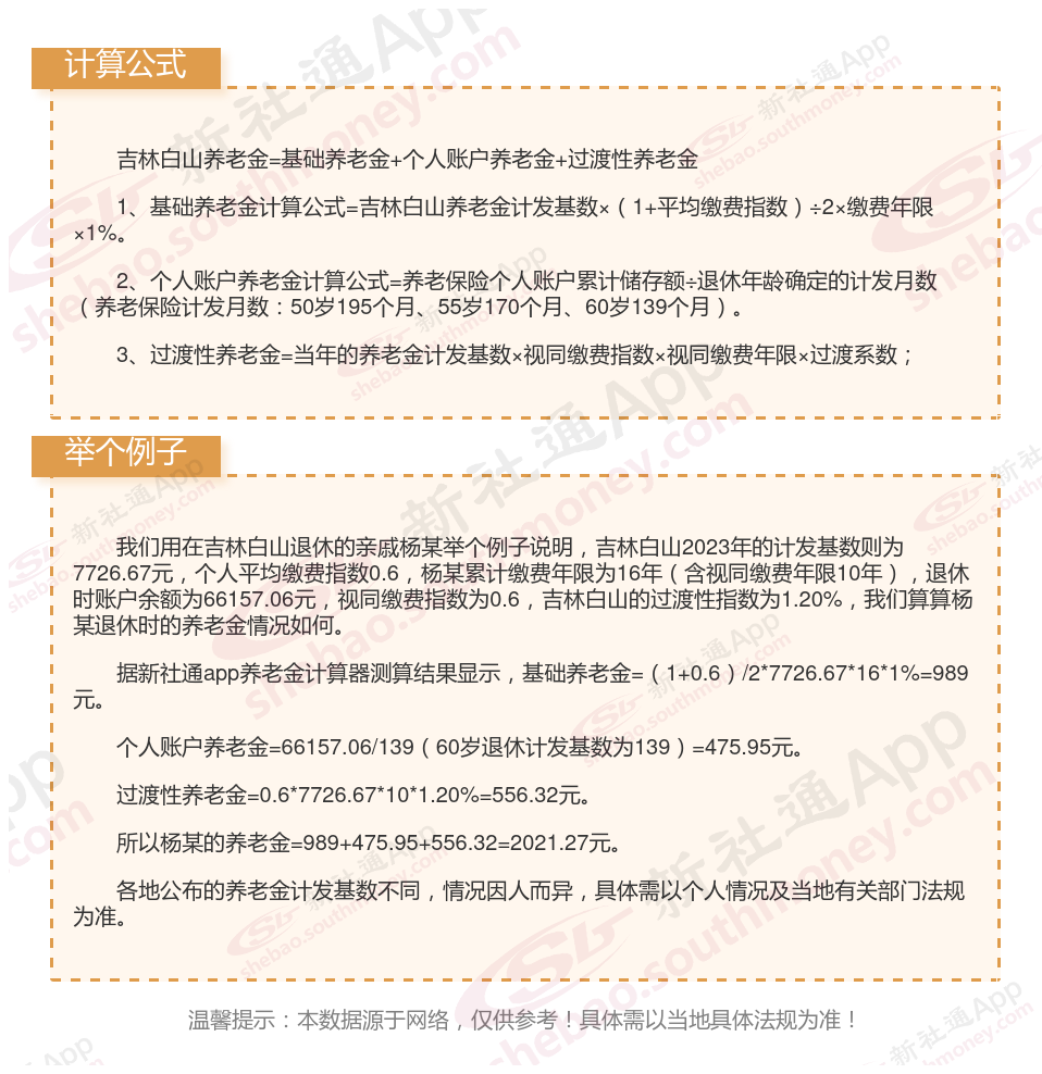 吉林白山退休工资养老金计算方法及公式2024年最新(举例说明)