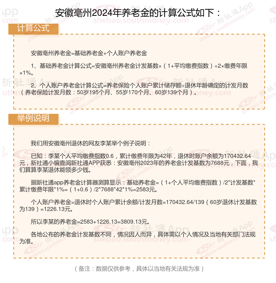 安徽亳州退休工资养老金计算方法及公式2024年最新(举例说明)