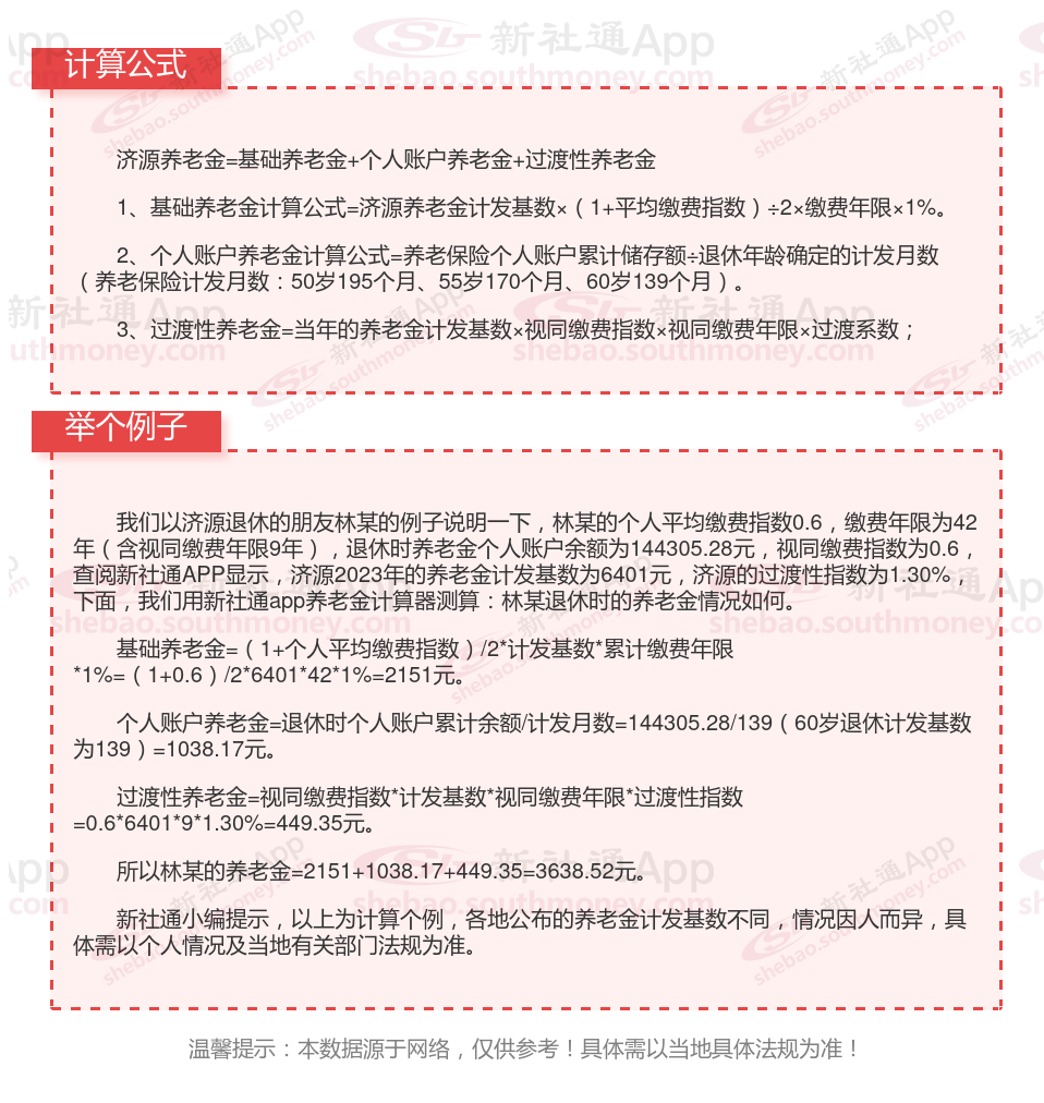 1、基础养老金计算公式=济源养老金计发基数×(1+平均缴费指数)÷2×缴费年限×1%。
