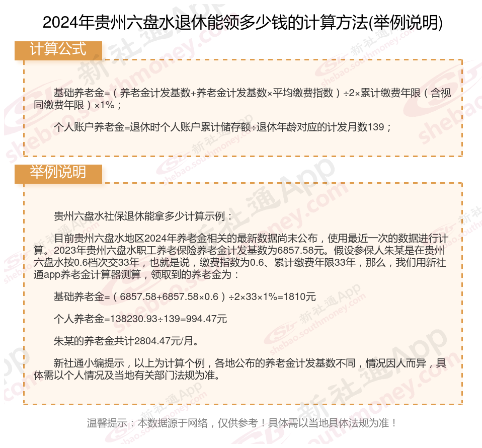 贵州六盘水退休工资养老金计算方法及公式2024年最新(举例说明)