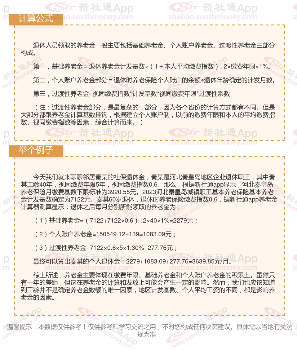 河北秦皇岛退休工资养老金计算方法及公式2024年最新(举例说明)