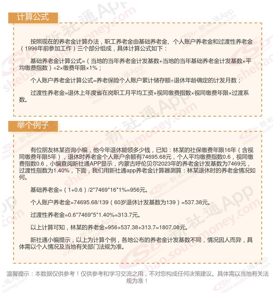 内蒙古呼伦贝尔退休工资养老金计算方法及公式2024年最新(举例说明)
