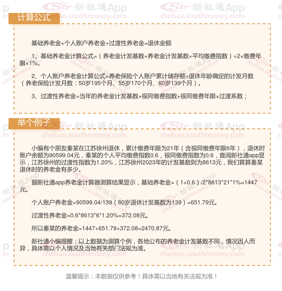 江苏徐州退休工资养老金计算方法及公式2024年最新(举例说明)
