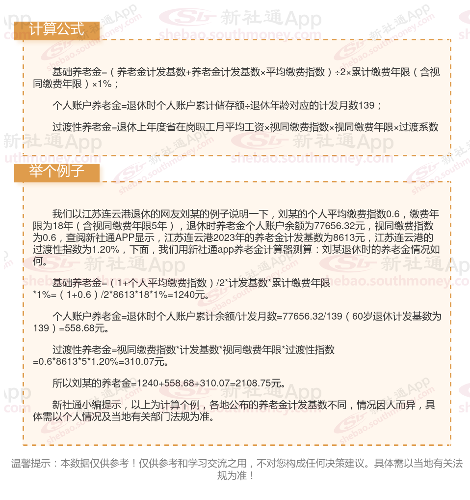 江苏连云港退休工资养老金计算方法及公式2024年最新(举例说明)