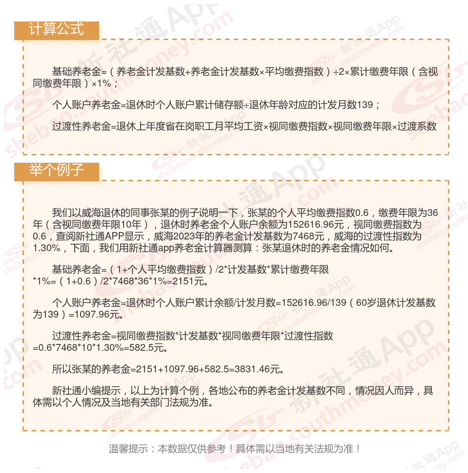 月基本养老金还包括过渡性养老金,其计算公式为:退休时上年度全省在岗职工月平均工资×本人平均缴费工资指数×1997年12月31日前的缴费期限×1.4%。