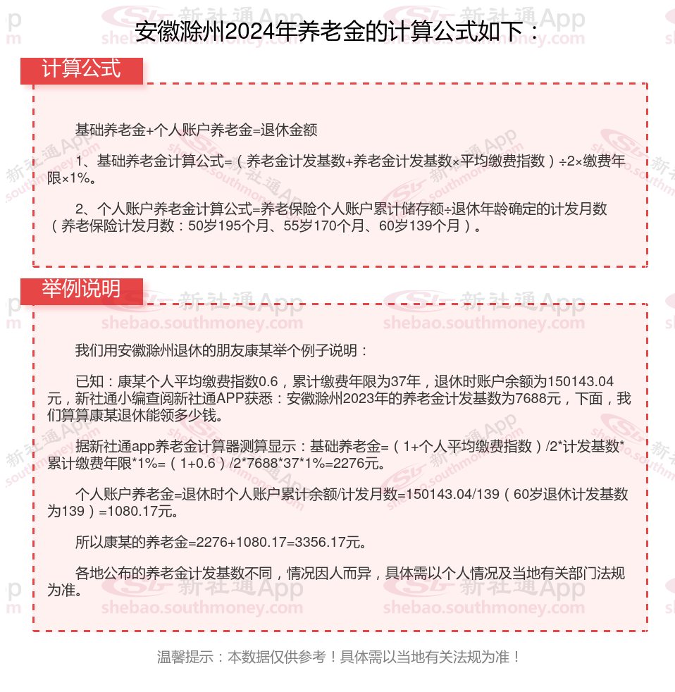 安徽滁州退休工资养老金计算方法及公式2024年最新(举例说明)