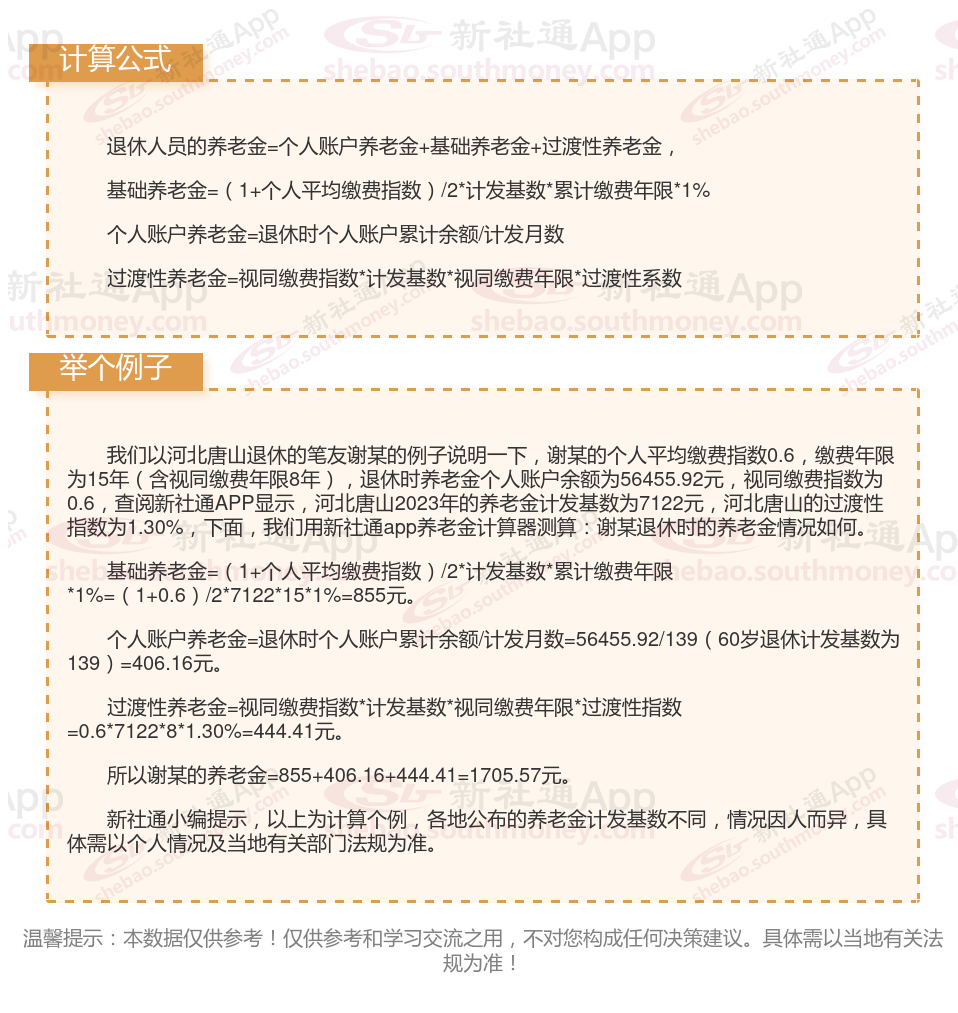 河北唐山退休工资养老金计算方法及公式2024年最新(举例说明)