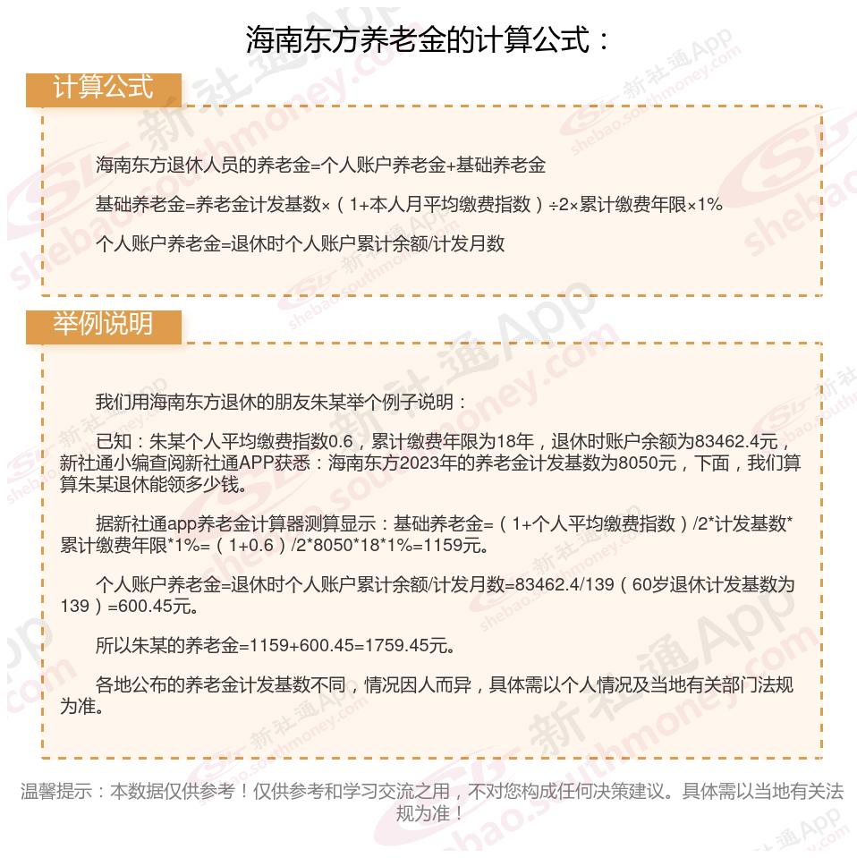 为了更加精确地了解自己未来每月能够领取的养老金金额,我们需要深入了解并掌握养老金的计算方法通过了解养老金的计算方式和影响因素,我们可以更好地规划自己的退休生活,确保生活质量不会因为退休而大幅下降。那么,社保交退休,每月能领取多少钱的养老金?下面随新社通app小编一起来看看海南东方2024年养老金计算公式。