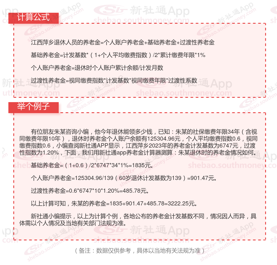 江西萍乡退休工资养老金计算方法及公式2024年最新(举例说明)