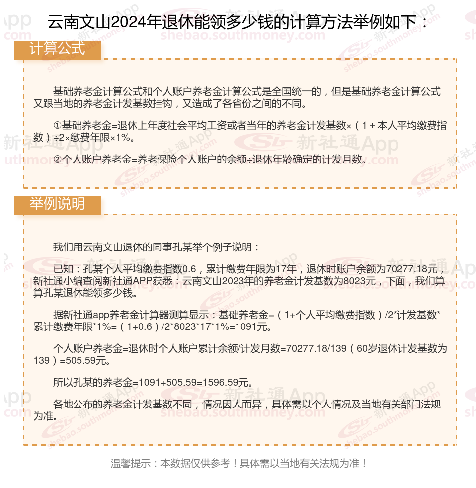 云南文山退休工资养老金计算方法及公式2024年最新(举例说明)