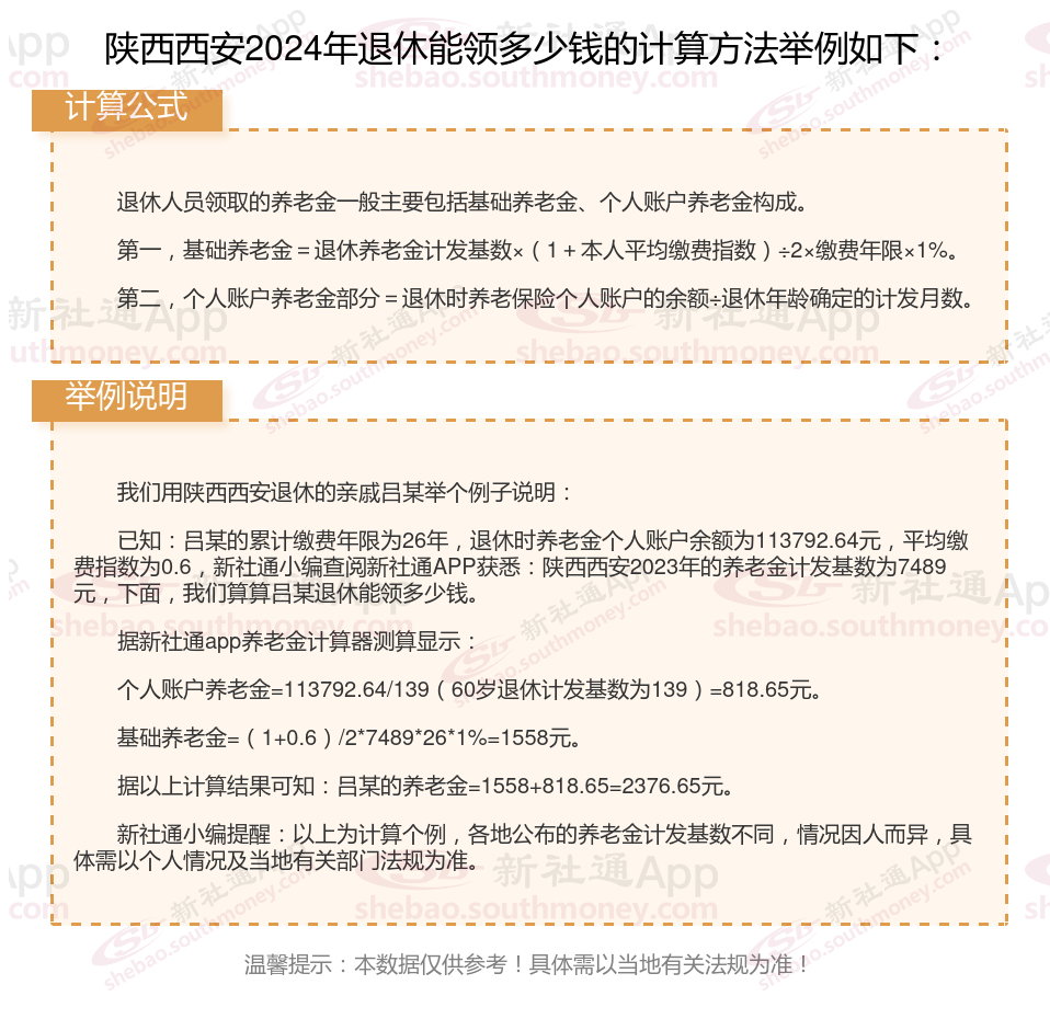 陕西西安退休工资养老金计算方法及公式2024年最新(举例说明)
