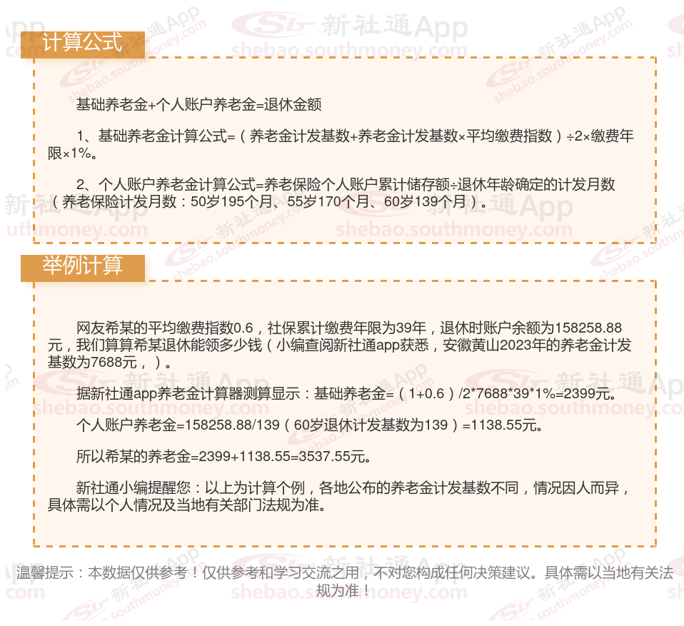安徽黄山退休工资养老金计算方法及公式2024年最新(举例说明)