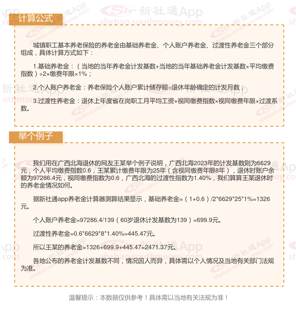 广西北海退休工资养老金计算方法及公式2024年最新(举例说明)