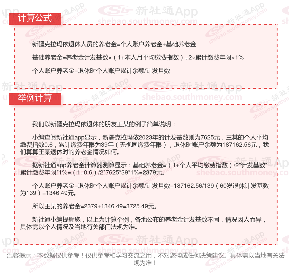 新疆克拉玛依退休工资养老金计算方法及公式2024年最新(举例说明)