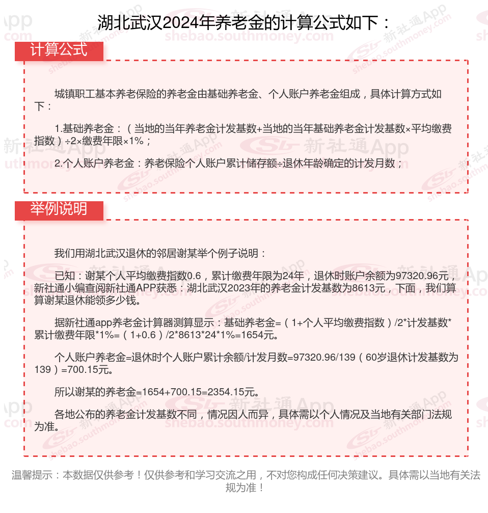 湖北武汉退休工资养老金计算方法及公式2024年最新(举例说明)