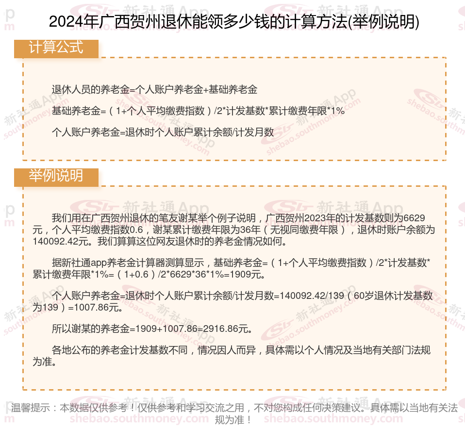 广西贺州退休工资养老金计算方法及公式2024年最新(举例说明)