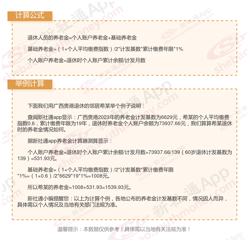 广西贵港退休工资养老金计算方法及公式2024年最新(举例说明)