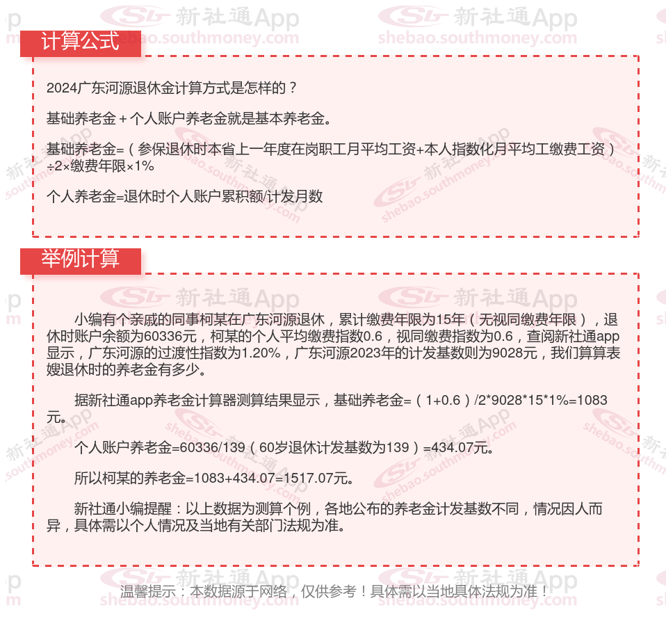 广东河源退休工资养老金计算方法及公式2024年最新(举例说明)