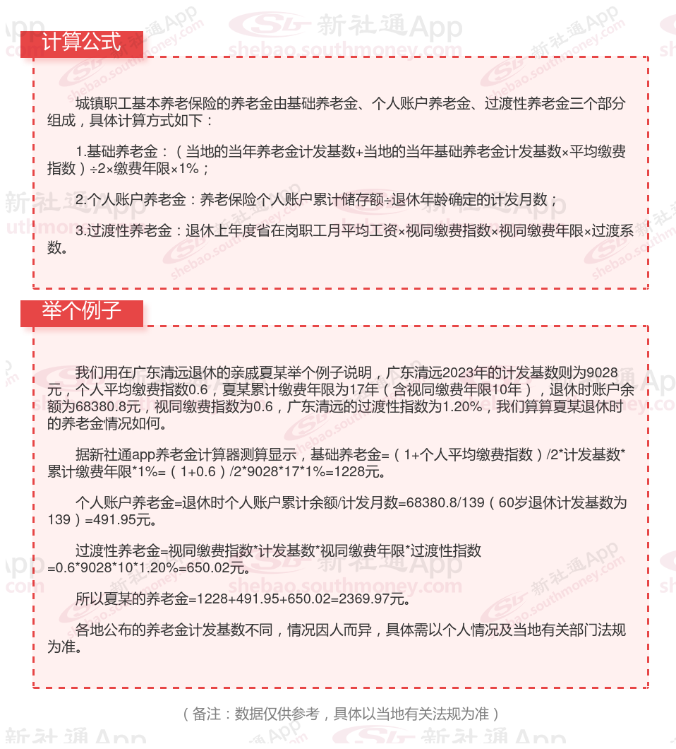 广东清远退休工资养老金计算方法及公式2024年最新(举例说明)