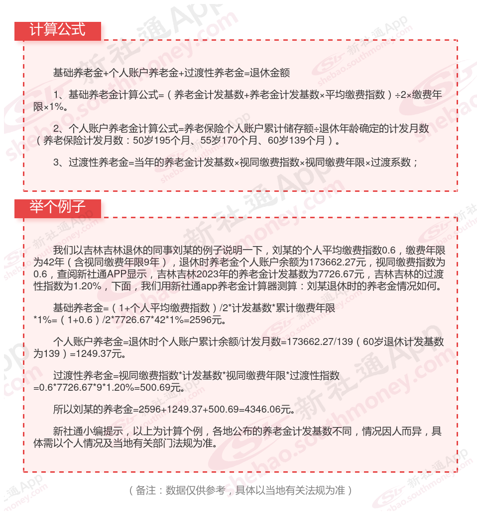 吉林吉林退休工资养老金计算方法及公式2024年最新(举例说明)