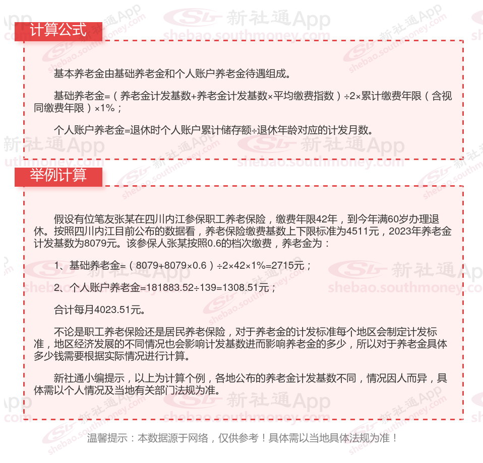 四川内江退休工资养老金计算方法及公式2024年最新(举例说明)