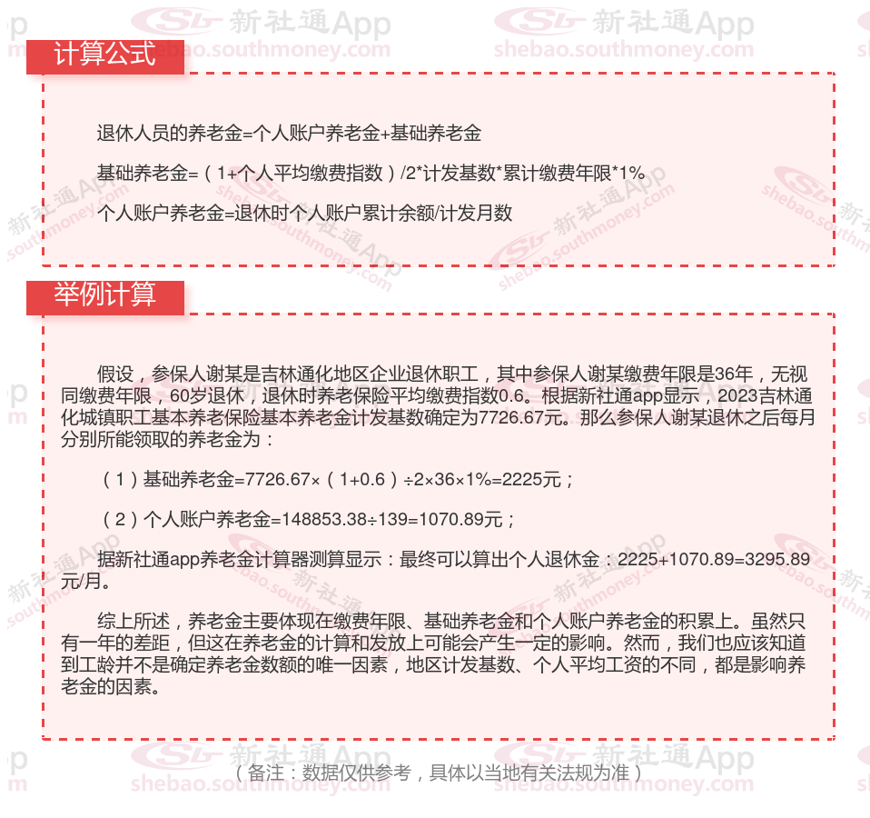 吉林通化退休工资养老金计算方法及公式2024年最新(举例说明)