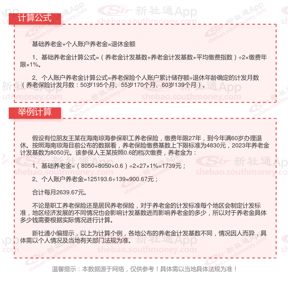 海南琼海退休工资养老金计算方法及公式2024年最新(举例说明)