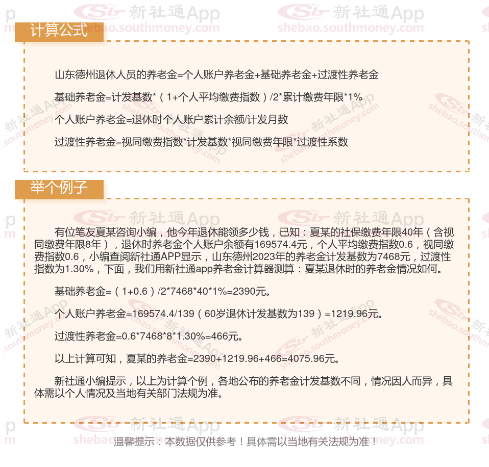 山东德州退休工资养老金计算方法及公式2024年最新(举例说明)