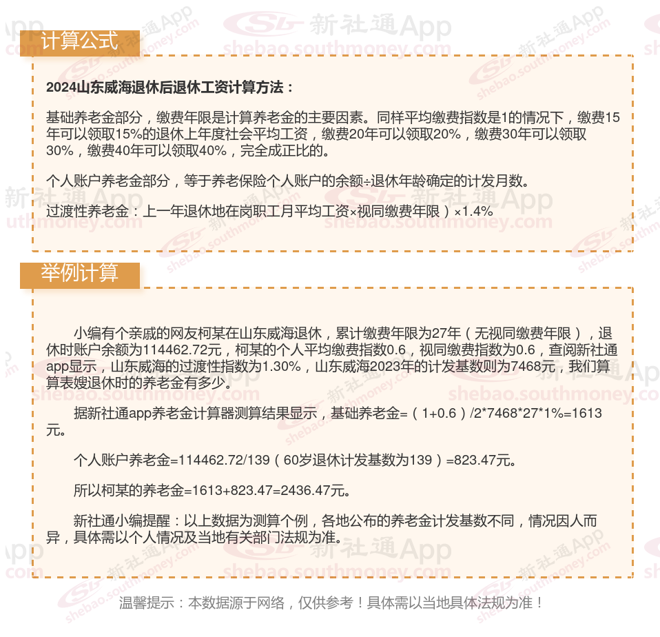 山东威海退休工资养老金计算方法及公式2024年最新(举例说明)