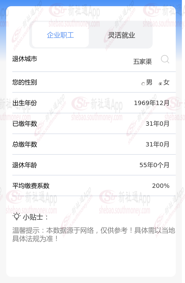 新社通app养老金计算器算出退休金每月多少钱?