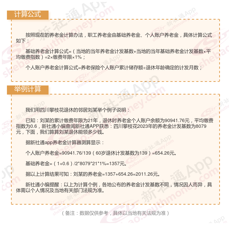 四川攀枝花退休工资养老金计算方法及公式2024年最新(举例说明)